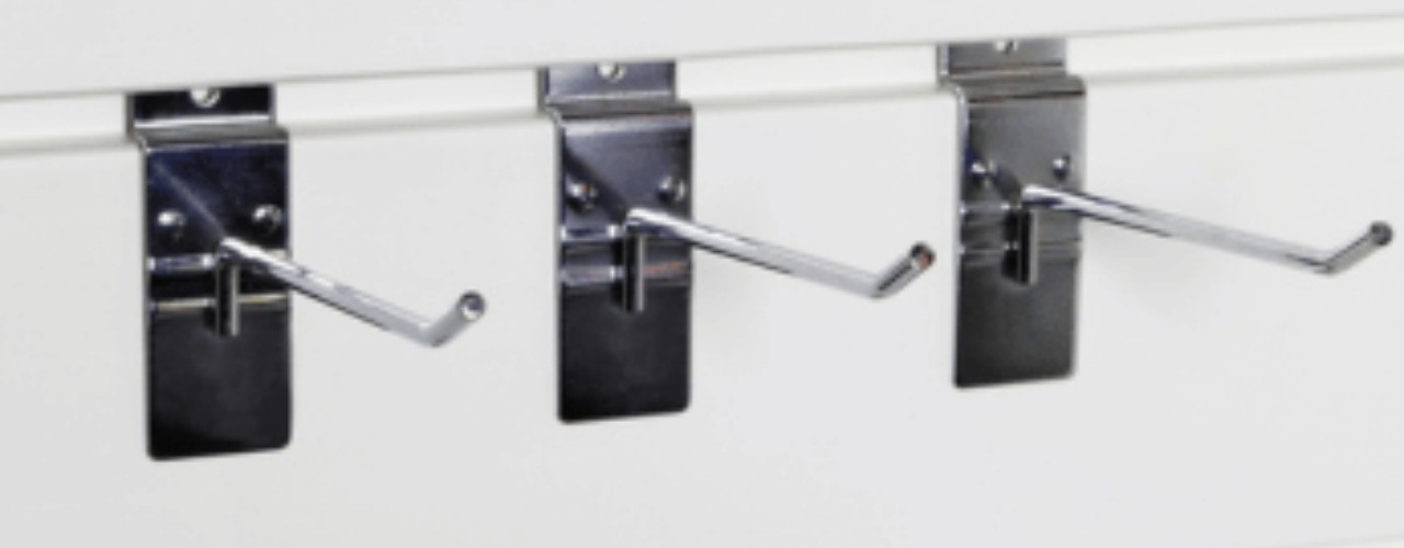 Slatwall hooks come in several patterns. The best choice depends on the item weight, packaging, and how you want the shelf to look.